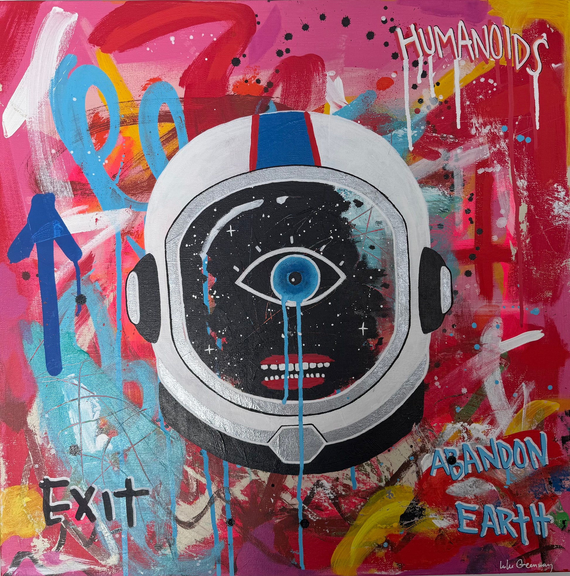 Space Head is a cosmic and captivating original painting that launches the imagination into the unknown. Painted in acrylic on canvas, this square-format work blends the human and the celestial, exploring what lies beyond the edges of our world.